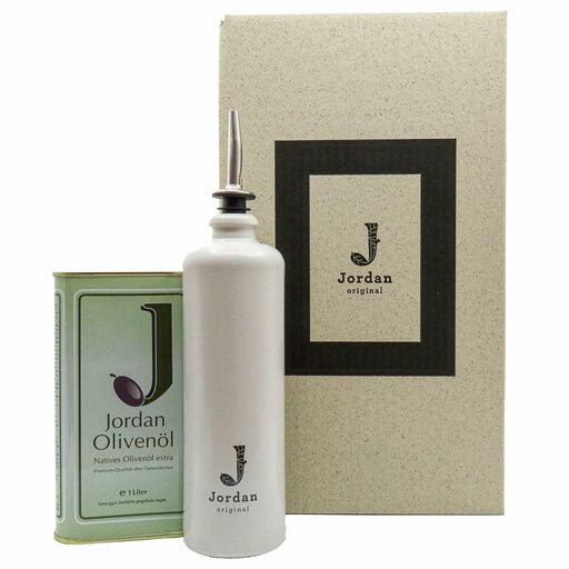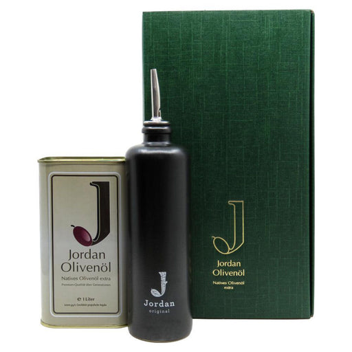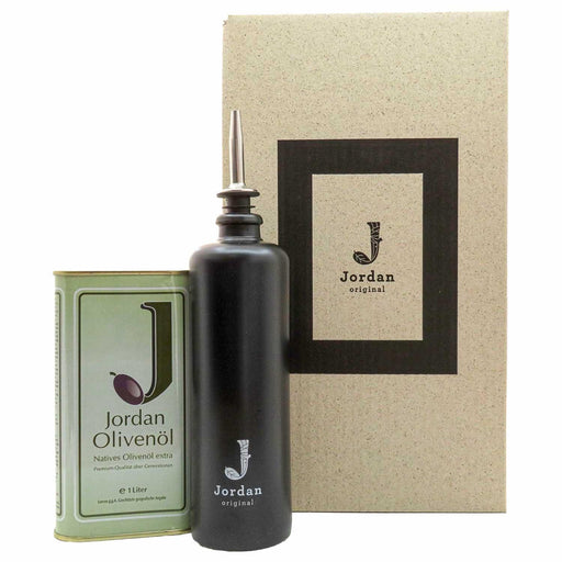 Jordan OlivenölDiese Geschenkbox besteht aus:1 x Jordan Original Leerflasche aus Keramik - Ideal zum Umfüllen - matt schwarz - 200 ml FassungsvermögenDie dicht ge...