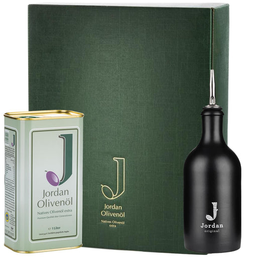 Jordan OlivenölDieses Geschenkbox besteht aus:1 x Jordan Original Leerflasche aus Keramik - Ideal zum Umfüllen - matt schwarz - 200 ml Fassungsvermögen - inkl. Ho...